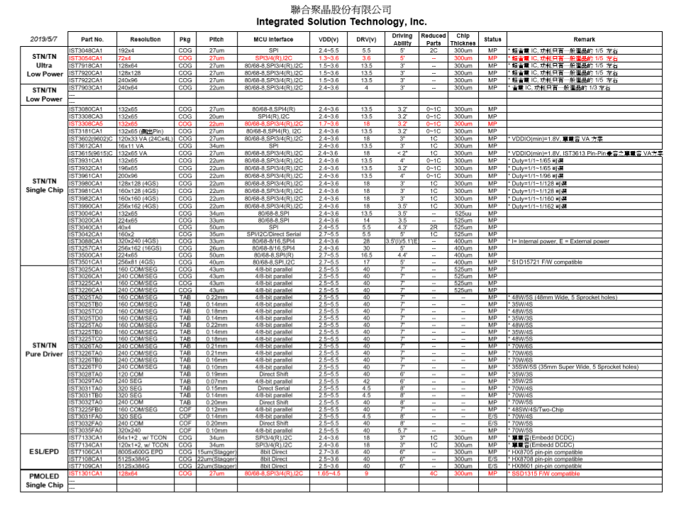 ESL/EPD, PMOLEDドライバICなど